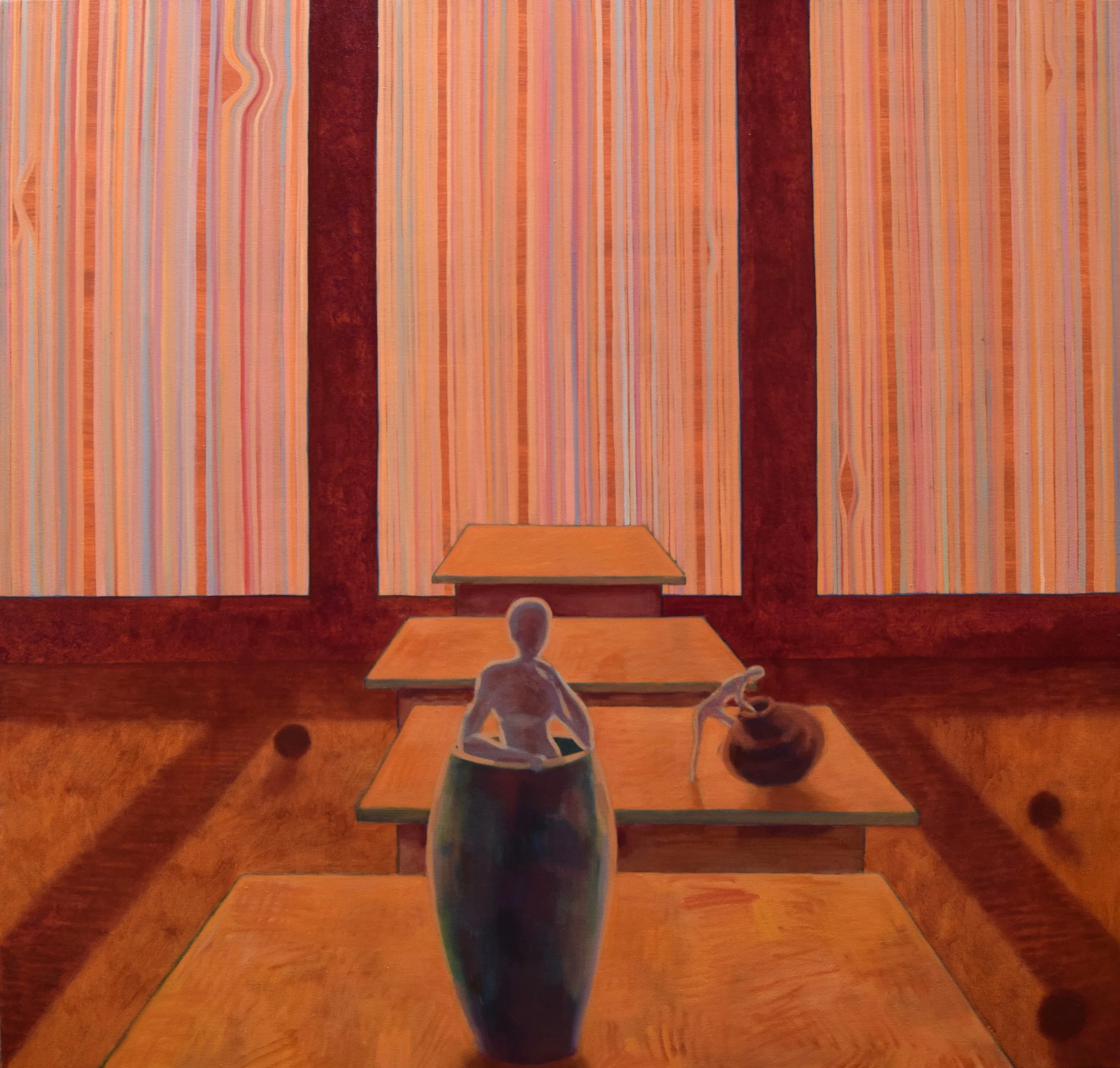 Sheltering in Antique Pots, 2025, oil on canvas, 50x50cm