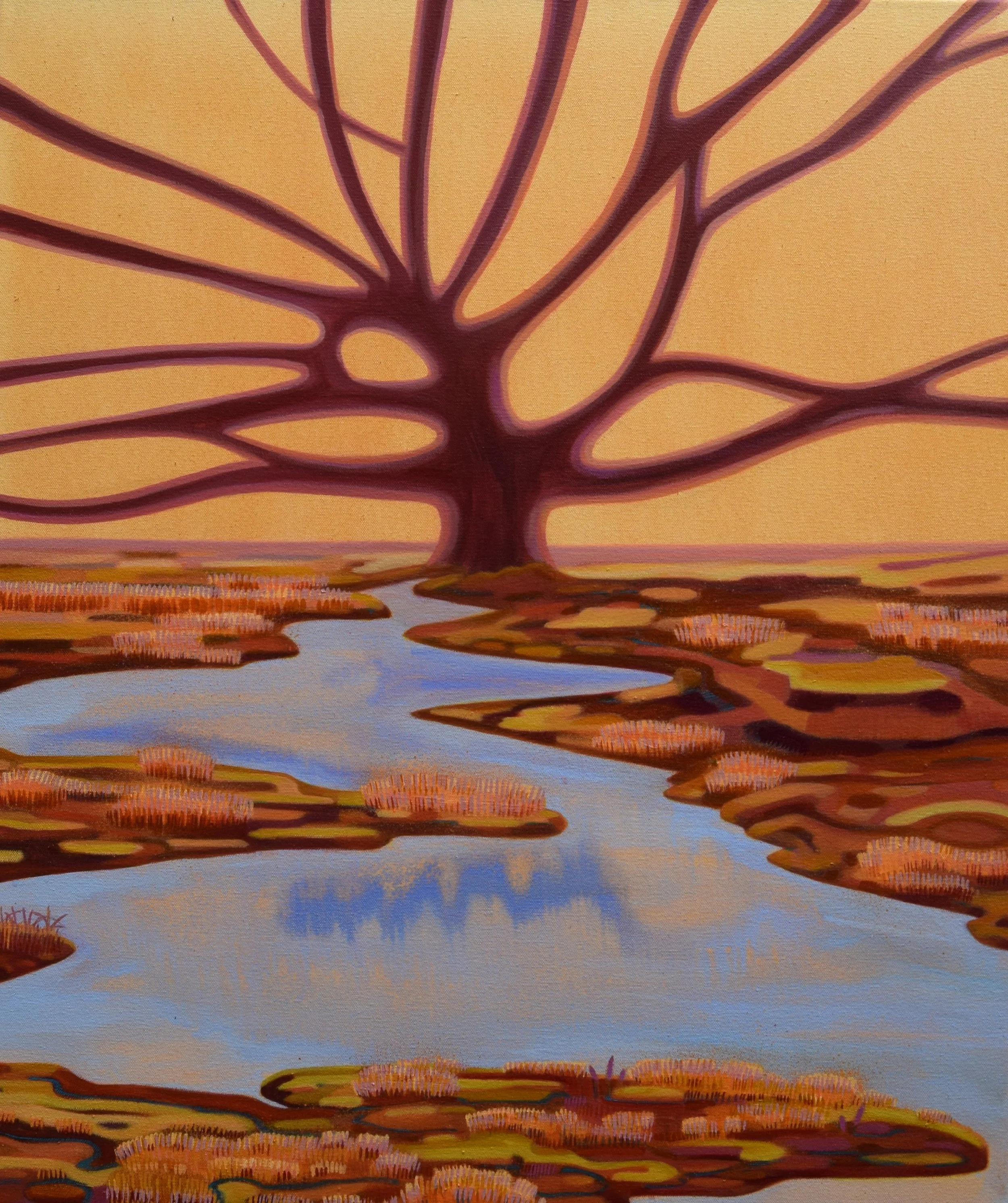 Tree by a pond, 2025, oil on canvas, 100x85 cm